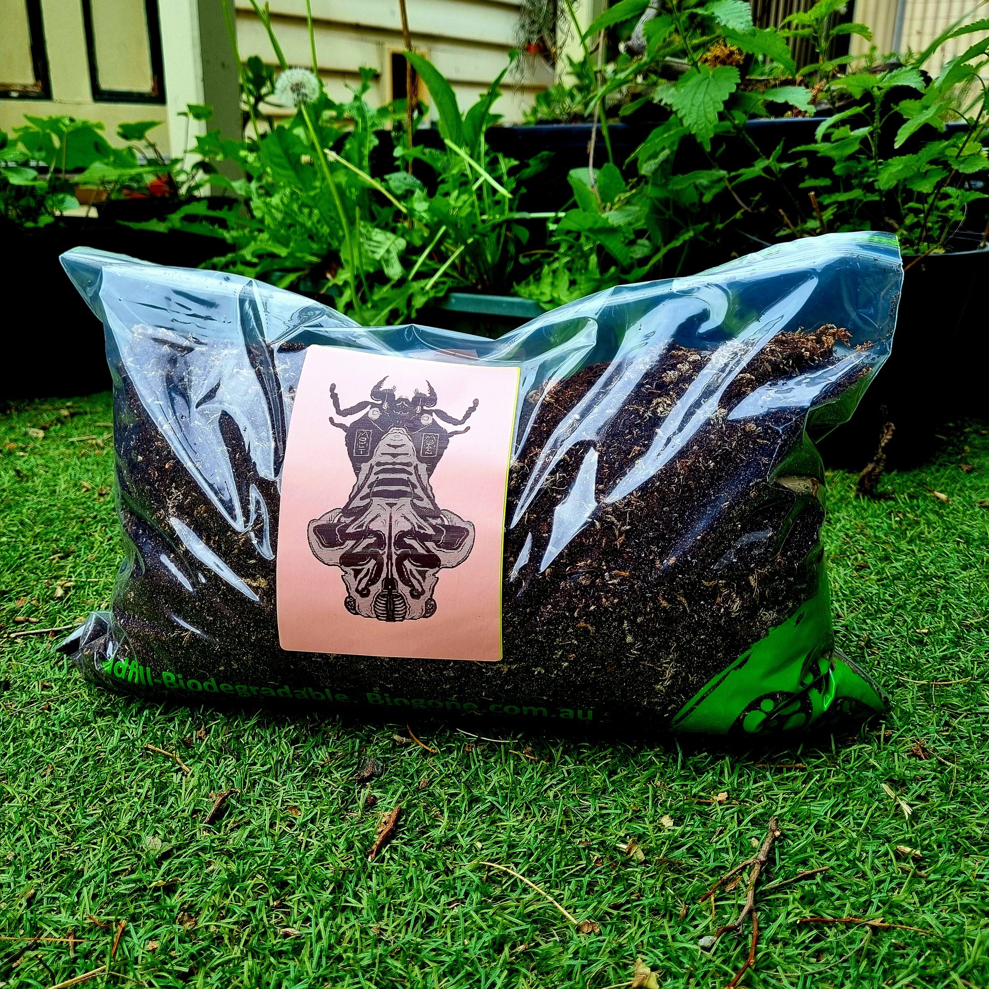 *Please be aware this is a LIVE composting material and will create heat/humidity within the bag, holes are pinned into each bag to avoid overheating/possible combustion (As with any compost or soil bags, please open the bag in a well ventilated area and avoid breathing in any dust)